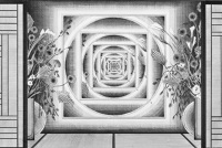 Kiang Malingue is pleased to present “The House in the Trees”, showcasing a suite of eight drawings on paper by New York-based artist Kyung-Me. This is the artist’s first exhibition with the gallery. Further developing a drawing practice that deals with haunting symmetries, uroboric infinities, embedded narratives composed of designs, furniture pieces and curios from different cultures and times, Kyung-Me considers the potential of mise-en-abyme structures in relation to the ways in which individuals form their own psychic prisons.